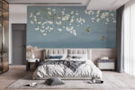 A pastel teal dream with birds and blossoms in gentle harmony.Brings freshness and charm to any space.